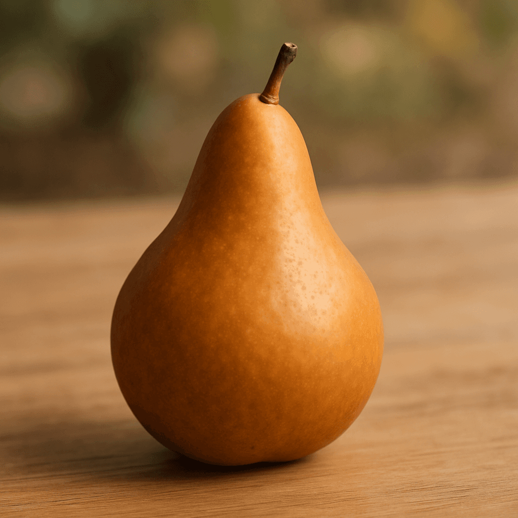 Poire allongée brun-roussâtre 200 g, chair ferme fine puis fondante, saveur miellée.