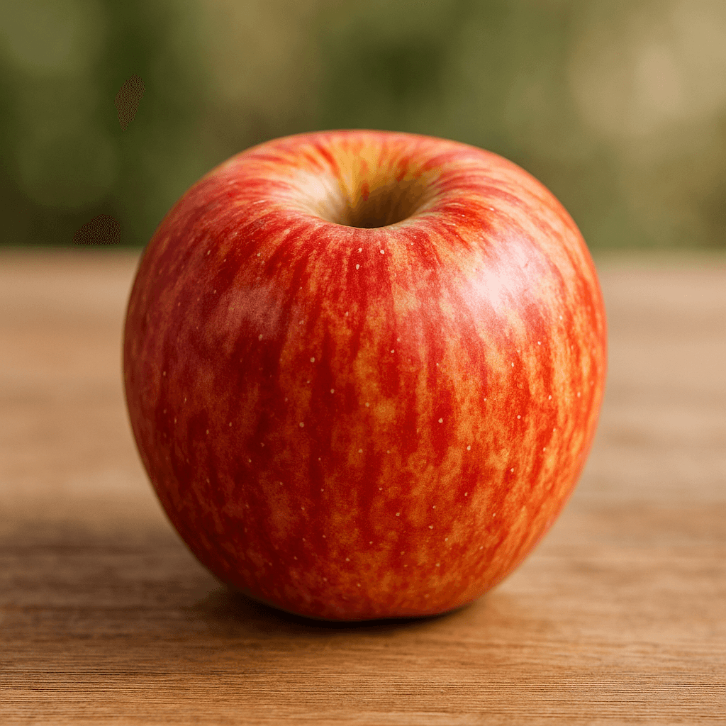 Fruits rouge orangé strié, 150 g, chair croquante très sucrée, production régulière et précoce dès la 2ᵉ année.